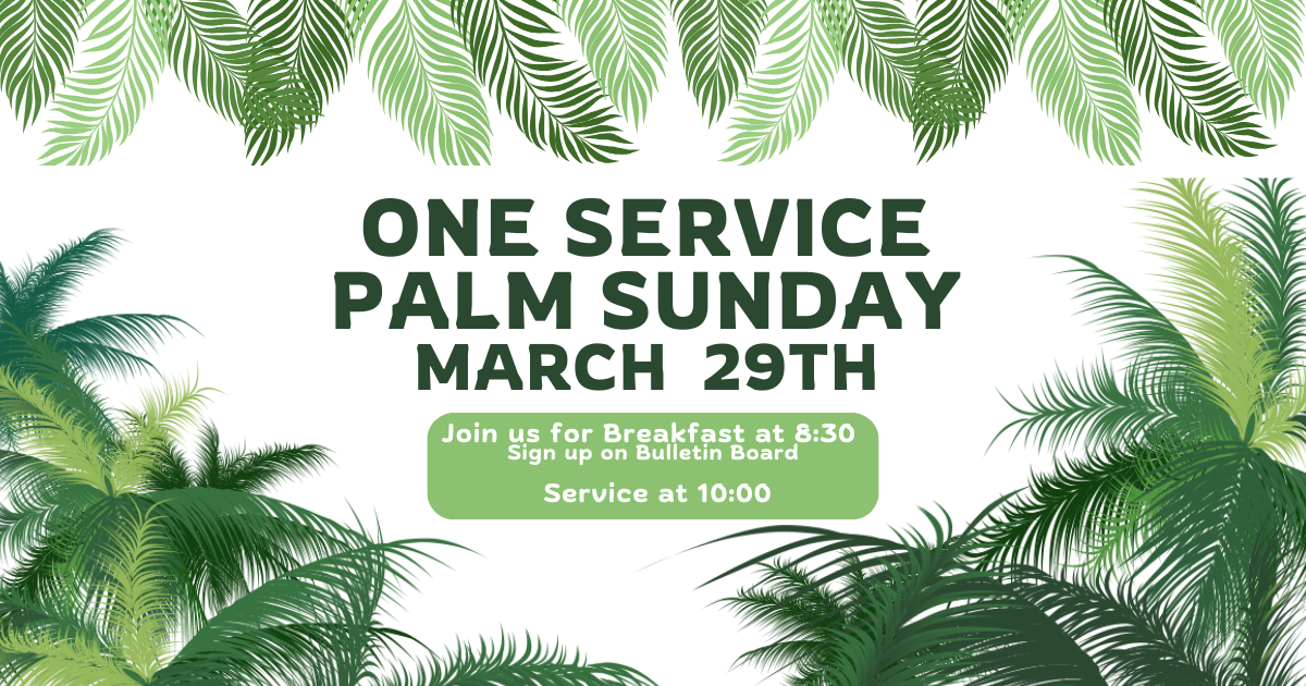 Join us as we begin Holy Week together on Palm Sunday. We will gather for a time of fellowship and breakfast at 8:30 AM, followed